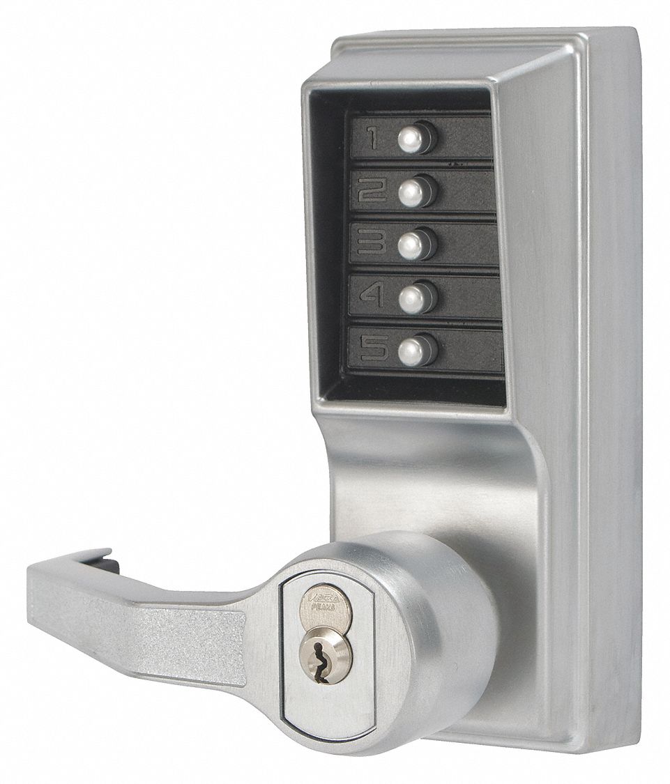 Kaba Simplex Lp1000 Series Metal Mechanical Pushbutton Exit Trim Lock With Lever Combination Entry And Key Override R C Medeco Assa Yale Abloy 5 Or 6 Pin Length Core Not Included Satin Chrome Finish Left Hand